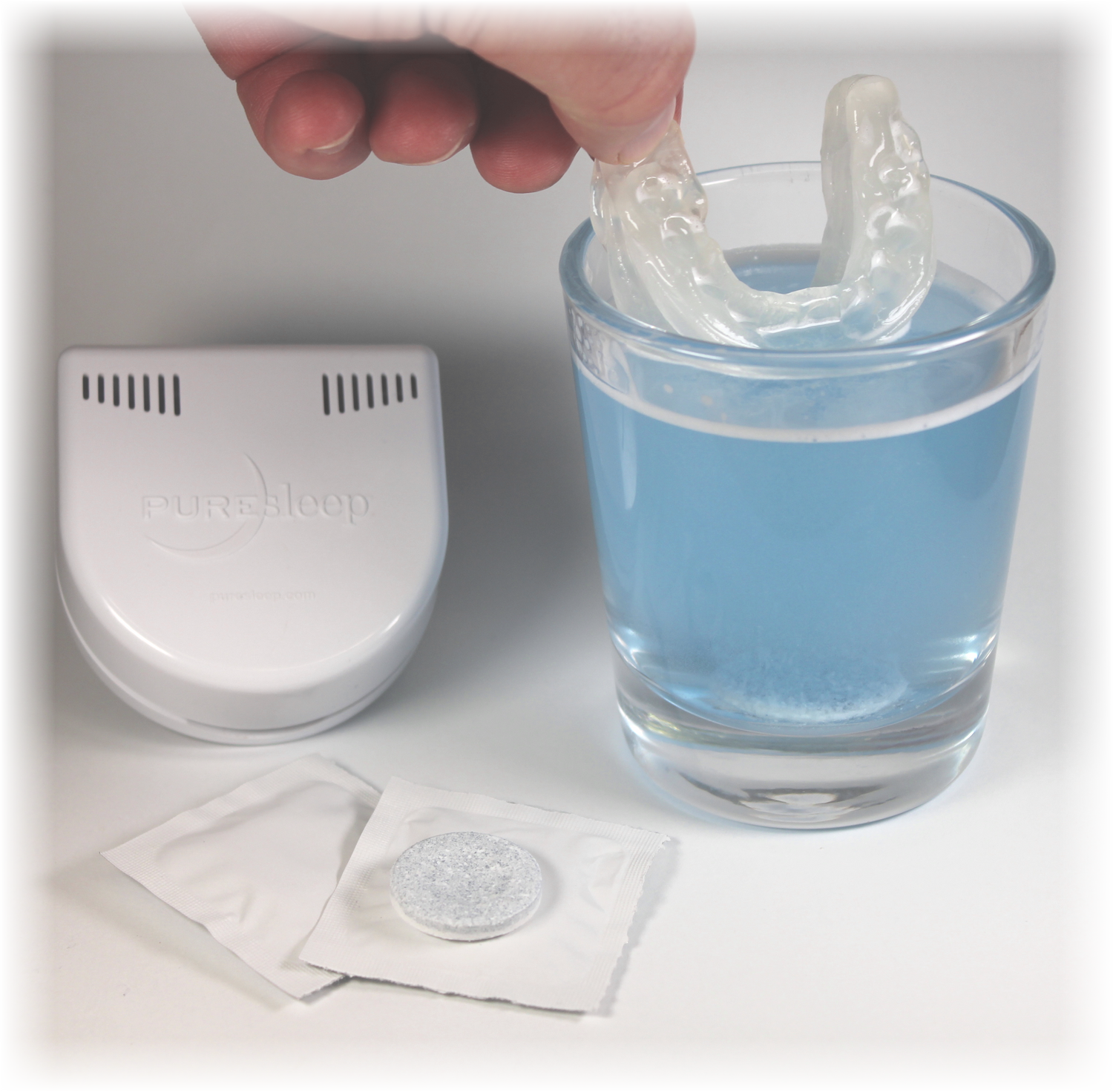 Add your PureSleep Anti-Snoring Mouthpiece or other dental appliance into the effervescing solution.